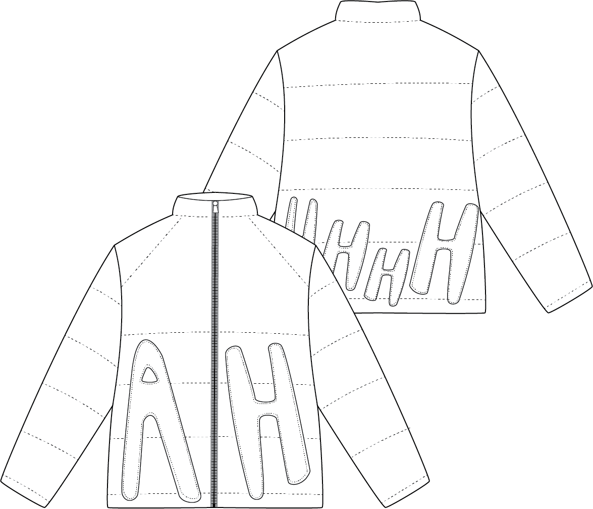 I had a blast creating this collection, all made from nylons and denims for a playful puffer x denim look that feels very "New York"—almost. The idea was to experiment with the puffer jacket style in fresh ways, so I created pieces like a ‘puffer print’, a puffer skirt, a puffer scarf, and a jacket with super-extended sleeves. To complement the jackets, I tailored jean accents into jorts and a vest, adding a unique twist to the overall vibe.