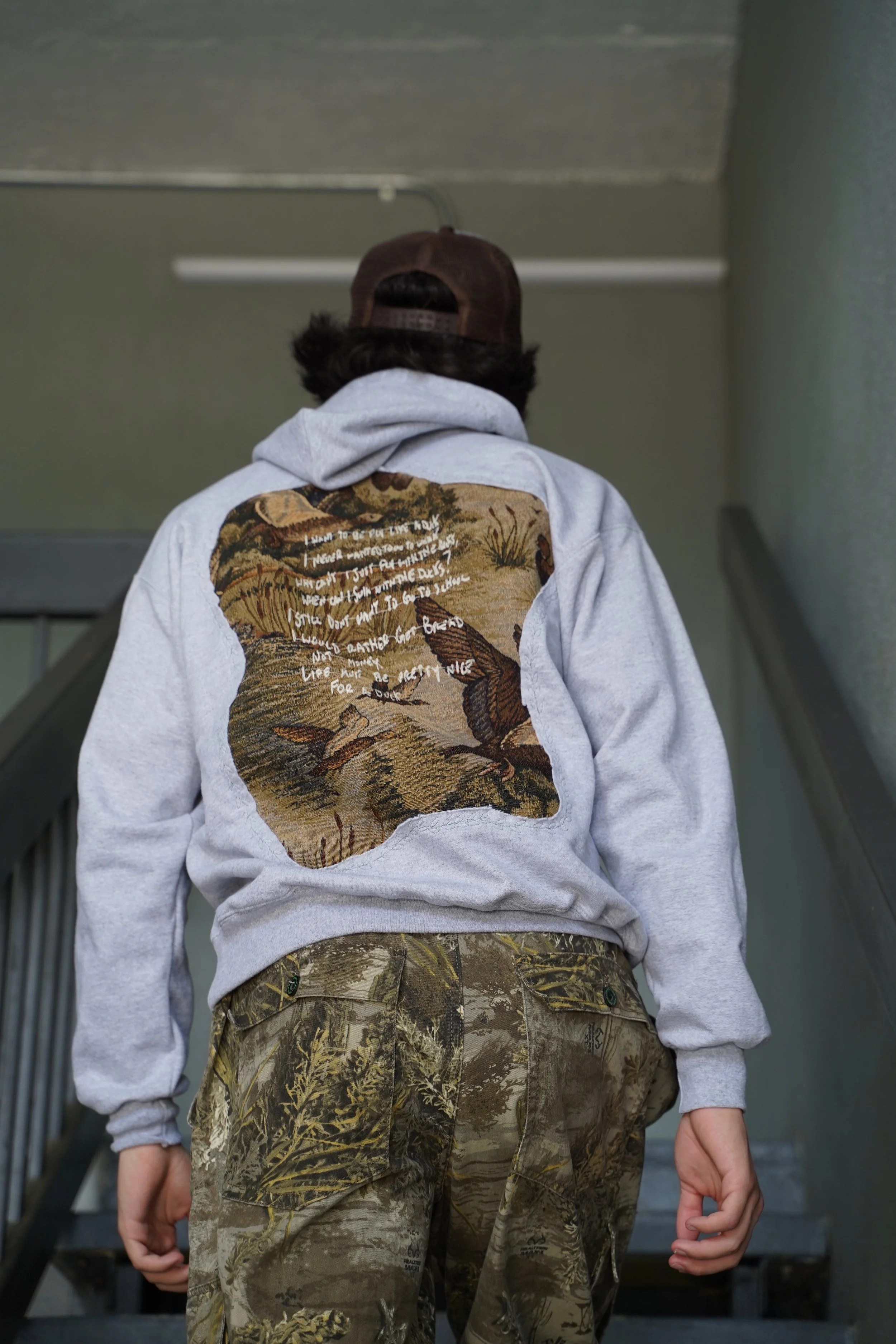 -Hoodies were Hanes Heavy Weight Cotton reworked with a jacquard duck tapestry.